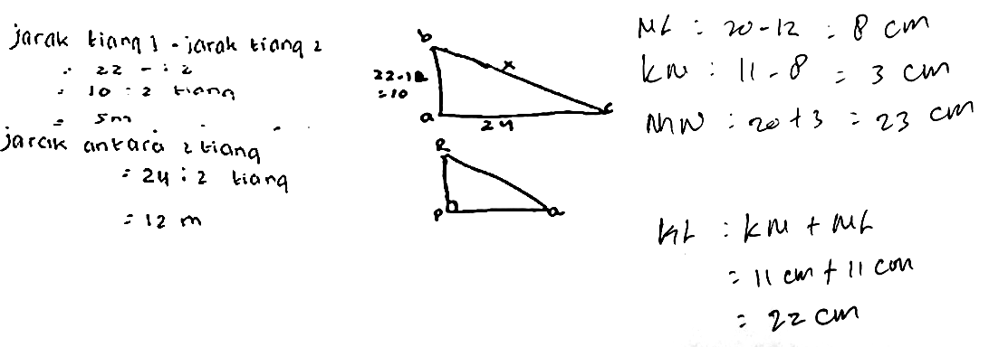 | P | : | Could you please tell me about the figure? So, it is known that Pole 1 is 22 meters long, and Pole 2 is 12 meters. |