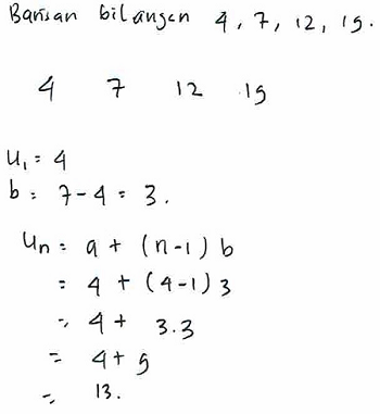 | 2 | Given the number sequences of 4, 7, 12, 19, ... (a.) Determine the formula of the nth term! (b.) Determine which term of the sequences that is 199! | Idem |