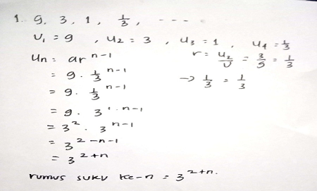 | 4 | Determine the formula of the nth term of the geometric sequences of 9, 3, 1, 1/3, …! | Idem |